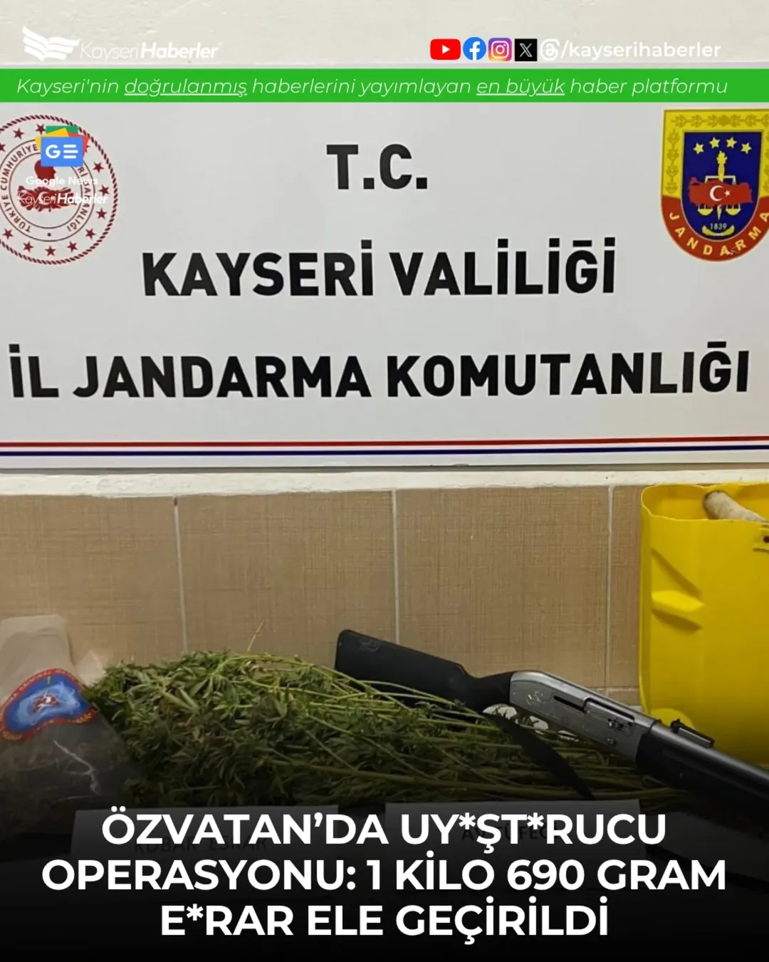 Kayseri İl Jandarma Komutanlığı ekipleri, Özvatan ilçesinde düzenlediği başarılı operasyonla önemli miktarda uyuşturucu madde ele geçirdi. Operasyonda, bir şahsa ait arazide yasadışı kenevir ekimi yapıldığı tespit edildi.