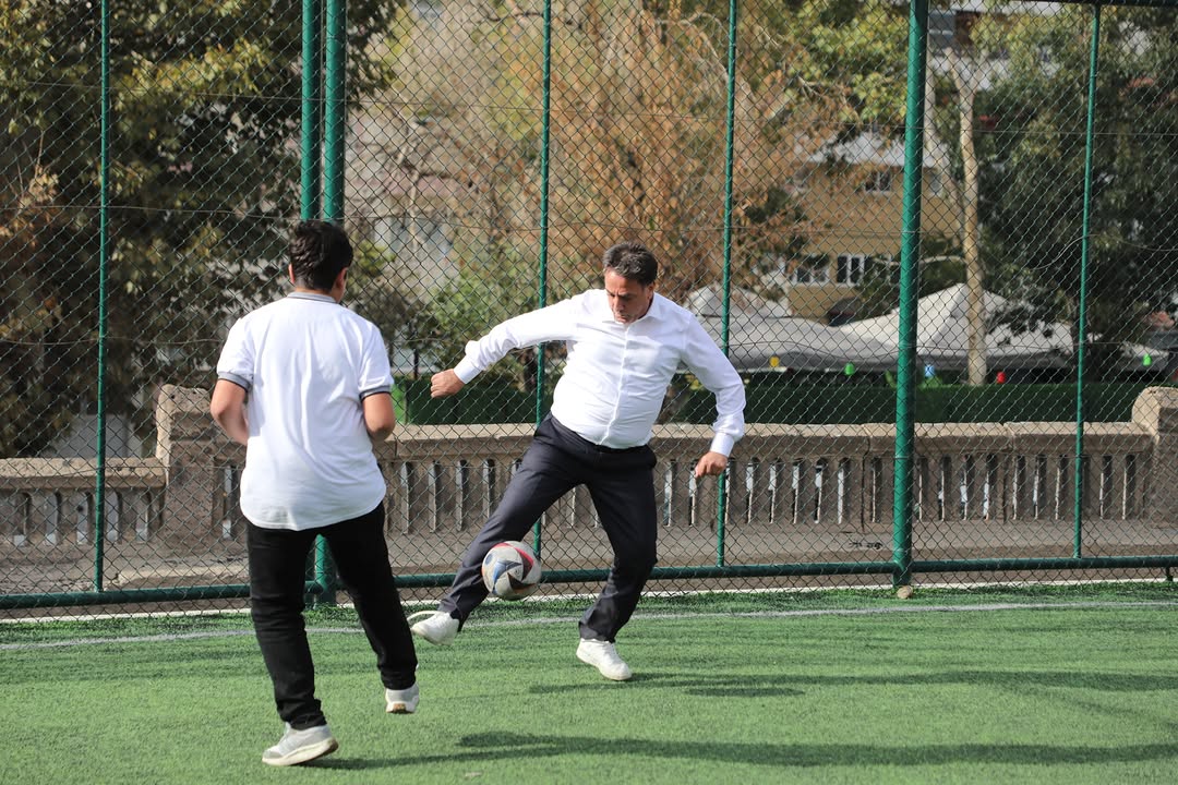 Ziyaret sırasında gerçekleşen futbol karşılaşması oldukça hareketli ve heyecanlı anlara sahne oldu. Sahadaki temposuyla dikkat çeken Başkan Adem Şengül, öğrencilerle kaynaşarak keyifli vakit geçirdi.