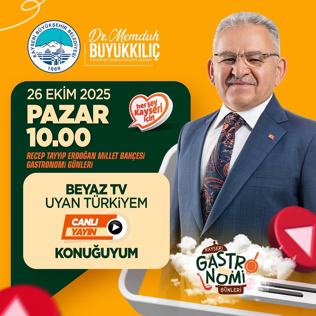 Etkinlik, bugün saat 10:00'da Beyaz TV'de yayınlanan "Uyan Türkiyem" programına ev sahipliği yapacak. Programda, Kayseri'nin bereketli sofralarını yansıtan lezzet yolculuğu ve şehrin gastronomi mirası ele alınacak. Bu canlı yayın, Kayseri'nin yöresel tatlarını geniş kitlelere ulaştırmak için önemli bir fırsat sunuyor.