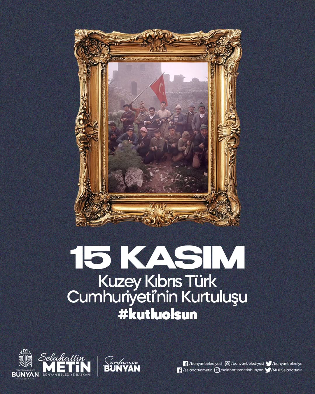 Kuzey Kıbrıs Türk Cumhuriyeti'nin (KKTC) kuruluşunun yıl dönümü, 15 Kasım tarihinde kutlandı. Türkiye'nin Kayseri ilçesi Bünyan Belediyesi tarafından yapılan açıklamada, KKTC'nin kuruluş gününün kutlu olması temennisinde bulunuldu.